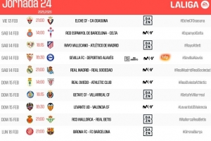 体育资讯1月29日讯 西甲官方公布了第24轮比赛的开球时间,2月15日4点皇马vs皇家社会,2月17日4点赫罗纳vs巴萨。