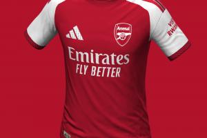 双红配色:主体标准为阿森纳传统的红色,衣领、袖口、肩部中的条纹为深酒红,这是阿森纳主场球衣自20-21赛季后首次启用双红配色。