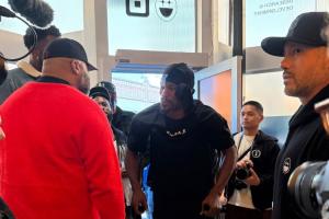 体育资讯01月30日讯 美国网友Guru更新动态,转发了一张勇士球星吉米·巴特勒拄拐公开露面的图片。