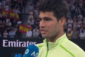 体育资讯1月30日讯 在阿尔卡拉斯3-2击败兹维列夫,晋级澳网决赛后,他接受了场边的采访。
