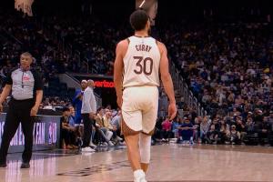 库里在2+1后不舒服走到场边,回了替补席,最后回了更衣室