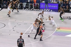 就是自信!文班亚马三分线外接球干拔 首次出手就命中!