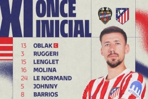 体育资讯2月1日讯 北京时间今天1点半,西甲第22轮马竞客战莱万特,马竞此役首发已经公布。