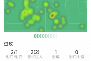 体育资讯2月1日讯 在本轮德甲,拜仁2-2战平汉堡,以下为凯恩本场数据: