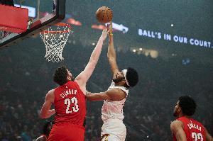 全场比赛,骑士中锋贾勒特·阿伦出战30分钟,23中16,狂砍40分17板5助4帽2断,没有失误。