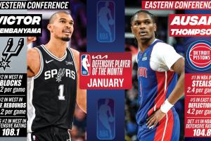 体育资讯02月04日讯 NBA官方宣布,活塞奥萨尔与马刺文班亚马分别当选1月东西部月最佳防守球员。