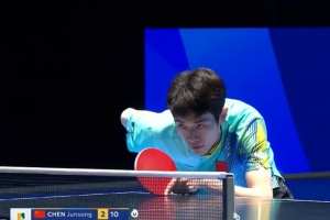 体育资讯2月4日讯 海口乒乓球亚洲杯小组赛第一轮,中国选手陈俊菘3-2战胜马来西亚选手黄祺燊 ,取得亚洲杯开门红。