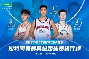体育资讯2月6日讯 CBA联赛官方公布常规赛第1-23轮最具进步球员排名,广州内线徐昕位列第一。
