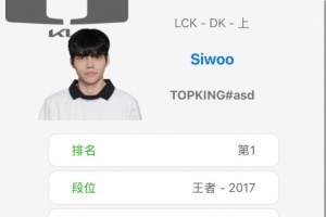 体育资讯2月11日讯 根据韩服排位小程序显示,DK上单Siwoo登上韩服第一,Peyz掉到第三。