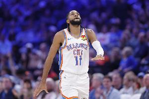 上半场,雷霆全面开花,全队11人出场10人有得分进账,但只有以赛亚·乔得分上双,拿到15分。