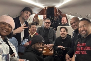 阿夫迪亚晒出一张他和亲友及个人团队成员同乘飞机的机舱内合影,并配文:“洛杉矶2026。”