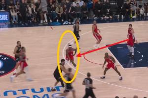 本场比赛第二节中段,比尔完成抢断,但在快攻中遭遇堵防,最终失误。随后他捂着自己的髋部,但是他没有立刻下场,仍然在场比赛,下半场他也仍有出战。