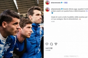 体育资讯2月22日讯 在科莫客场2-0击败尤文后,尤文旧将、科莫前锋莫拉塔更新了社交媒体。