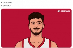 赛后美媒StatMuse发推写道:“申京在纽约的表现:6个进球、6次失误。”