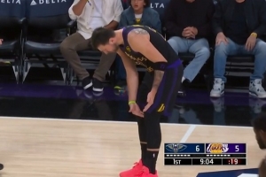 GIF-东契奇突破与锡安对膝