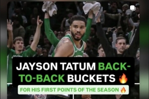 本场比赛,塔图姆在时隔298后迎来复出,16中6拿到15分12篮板7助攻1抢断。