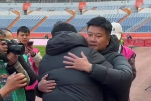 体育资讯3月7日讯 今天泰山主场对阵辽宁铁人的中超首轮比赛开赛前,两队主帅韩鹏和李金羽友好互动。