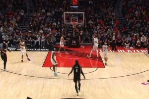场边库里看高兴了!小佩顿外线连中两记三分球 勇士领先19分打停