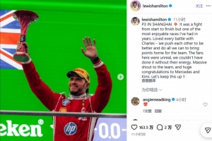哈密尔顿写道:“在上海的P3!💥 这是一场从头到尾的恶战,也是我多年来跑得最尽兴的一场比赛。我非常享受与查尔斯(勒克莱尔)的每一次战斗——我们互相激励,变得更强,并竭尽所能为车队带回积分。”