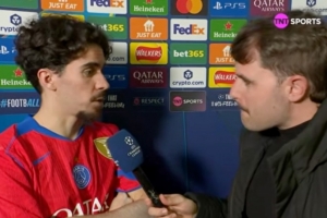 体育资讯3月18日讯 欧冠1/8决赛次回合,巴黎客场3比0击败切尔西,总比分8比2大胜晋级8强。赛后,巴黎中场维蒂尼亚接受了TNT体育的采访。