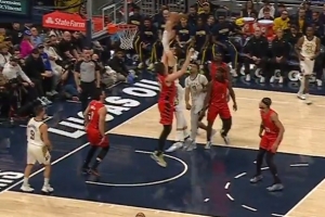 迪文岑佐扑防森萨博被吹三分犯规 回放后改判森萨博踢腿进攻犯规