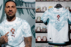 据了解,葡萄牙队客场球衣设计从超级英雄战衣(V字形设计)和海洋(图案)中汲取灵感,海洋象征着几代人全心全意为国家队效力的纽带,超级英雄的主题则是彪马将球员们视为激励世界各地球迷、连接不同国界的英雄。