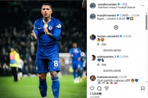 恩佐上传了自己在比赛中的照片,并配文写道:“再一次……伦敦是蓝色的💙🦁”。