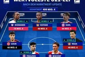 德甲U21身价最高阵容(总价4.99亿欧)