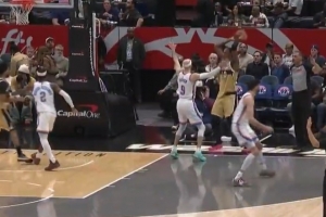 游刃有余!杨瀚森直塞喂饼乐福 随后自己强攻晃飞防守轻松打中