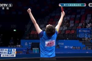 王曼昱末局在2-8落后的情况下连拿8分实现大逆转,赛后她和黑龙江教练振臂高呼,庆祝夺金。