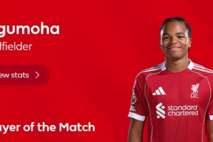 2射2正进1球+2关键传球!官方:恩古莫哈当选利物浦本场队内最佳
