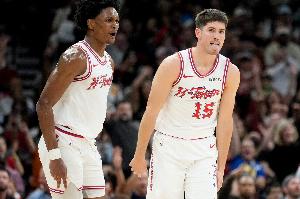 “谢泼德已经迈出了至关重要的一步,成长为我们当初期待的、打法极具冲击力的球员。只是他还需要提升赛场稳定性,补齐自身短板。整体而言,两人本赛季都大放异彩,我很开心他们能获得这么多实战历练机会。”斯通继续说道。