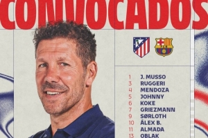 体育资讯4月14日讯 北京时间明天凌晨,马竞将在欧冠1/4决赛次回合比赛中主场对阵巴萨,首回合马竞2-0取胜,马竞公布了此役的球员名单。吉梅内斯、汉茨科、普比尔、巴里奥斯缺席,卡尔多索、奥布拉克回归。