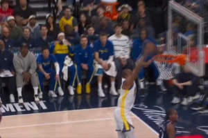 这一幕?追梦掩护发力撞倒小琼斯后库里中投命中 裁判没有表示