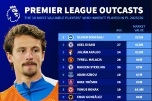 本赛季英超仍未出场球员身价排行: