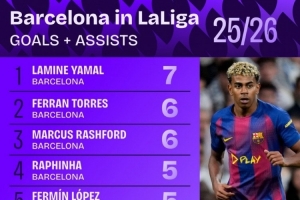体育资讯11月3日讯 据Squawka统计,巴萨本赛季5名球员联赛参与进球5+,五大联赛首队。