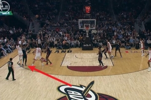神来之笔!贾雷斯·沃克弧顶拿球 左手强投三分压哨命中