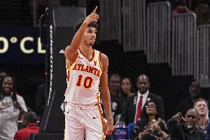 超远距离!特雷·杨后场长传助飞库利巴利空接暴扣