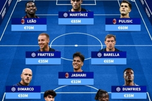 体育资讯11月23日讯 意甲第12轮比赛将上演米兰德比,德国转会市场盘点了米兰和国米两队合体身价最高阵,国米7将米兰4将入选,其中包括劳塔罗、莱奥、普利西奇、亚沙里等球员。