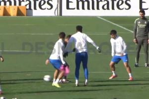体育资讯11月25日讯 皇马欧冠赛前训练,阿隆索加入球队抢圈游戏。