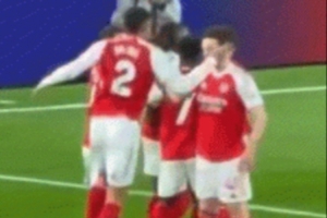在北伦敦德比4-1击败热刺的比赛中,埃泽的一粒进球后,萨利巴赶来庆祝时“怒扇”赖斯一记耳光🤣