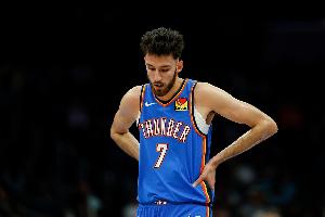 上半场,雷霆内线霍姆格伦表现不佳,尤其是进攻端毫无手感,在13分钟的时间里,投篮5中1,仅拿到2分4篮板1盖帽的数据,正负值-6。