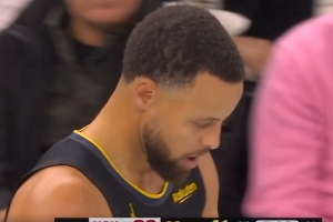 GIF-库里传球直接传出界外 自己也有点沮丧