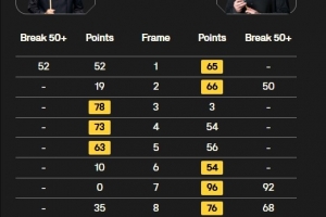龙泽煌与路易·希斯科特各打出三杆50+,并鏖战至决胜局,决胜局中龙泽煌顶住希斯科特的准度攻势,清至粉球完成逆转,最终6-5战胜希斯科特,晋级英锦赛正赛!