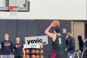 据开拓者随队记者@yovic_报道,今天训练尾声时,杨瀚森和里斯还留在场上补了几组投篮。