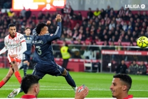 体育资讯12月1日讯 西甲第14轮皇马客战赫罗纳第45分钟,奥纳西中路无人盯防,跟进兜射破门。