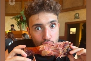 火箭官方晒出申京吃火鸡的照片,写道:“感恩节虽然结束了,但我们仍在享用美食!”