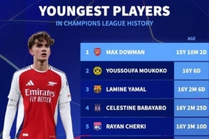 体育资讯11月5日讯 欧冠联赛阶段第4轮比赛,阿森纳在客场以3-0的比分完胜布拉格斯拉维亚。本场比赛,阿森纳15岁小将道曼替补登场成欧冠历史出场最年轻球员。