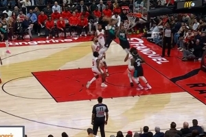 横冲直撞!字母哥转身隔扣赫夫 随后空篮再扣率队扩大领先