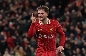 体育资讯11月5日讯 欧冠联赛阶段第4轮比赛,麦卡利斯特头球破门,利物浦1-0领先皇马。